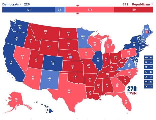 預測2024大選結果 距離大選只有一個多星期, 其實投票已經開始. 明顯川普的勢頭越來越勁, 七個搖擺州都領先. 以下是我對大選結果的預測: 川普會以312選舉人票擊敗哈利斯, 當選為第47屆美國總統. 10/24/2024 11/6/2024 分享此文: 按一下即可分享至 X(在新視窗中開啟) X 按一下以分享至 Facebook(在新視窗中開啟) Facebook 喜歡 正在載入...